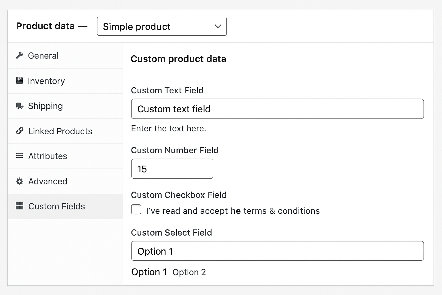 'label' => __( 'Custom Select Field', 'woocommerce' ),
