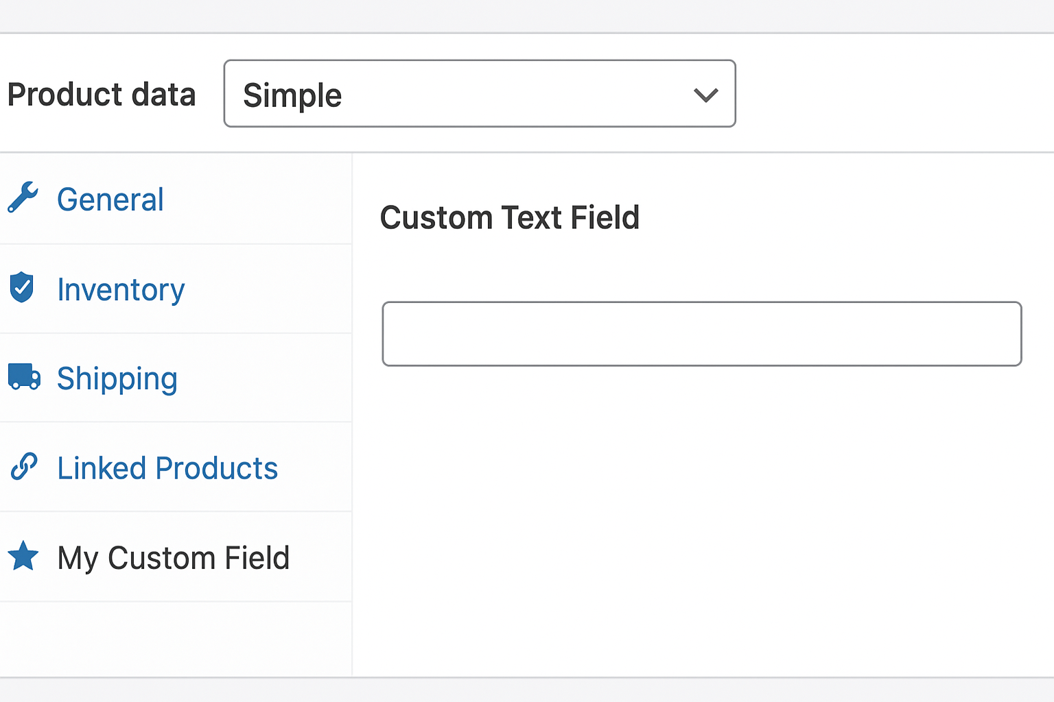 You will show Product panel tab: General, Inventory, My Custom Field, shpping etc. Here “My Custom Field” is in 2nd position. So here i show you change position of custom product panel tabs (” My Custom Field”) in Woocommerce admin panel.